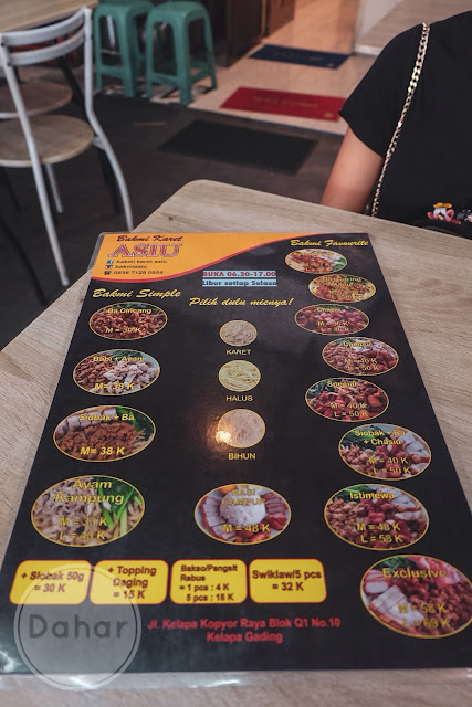 Bakmi Karet Asiu memiliki buku menu atau selembar menu besar yang sudah di laminating agar tidak basah kena tumpahan Teh Badak atau kuah mie, menurut gue tampilan menu sangat informatif, lengkap dengan foto makanan dan yaa selain itu yang penting ada harga setiap menu. By the way, penting gak sih bahas penampilan buku menu?